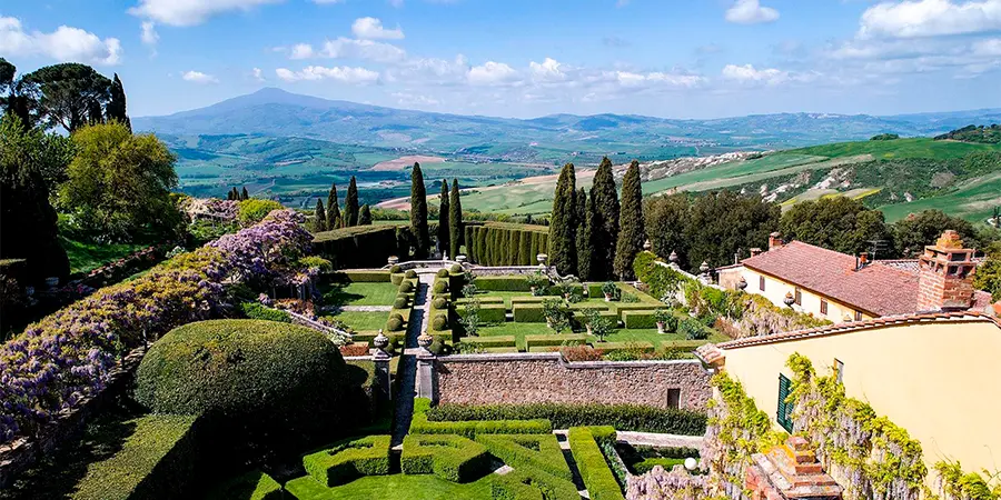 Primavera na Toscana. Jardins e terraços com vistas incríveis.