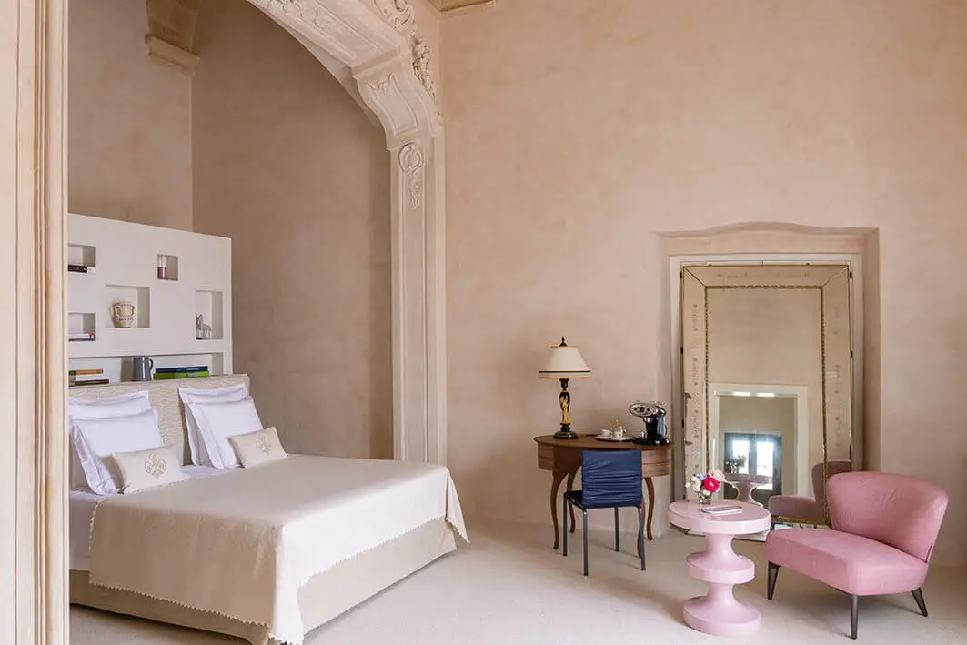 Uma hospedagem digna da realeza. Assim é o Castello di Ugento, localizado no topo de uma colina, proporciona vistas deslumbrantes de seu terraço. Além das comodidades de um hotel 5 estrelas, o grande destaque é sua escola de culinária, que funciona como uma operação profissional completa, recebendo desde alunos do Culinary Institute of America até chefs amadores e hóspedes.