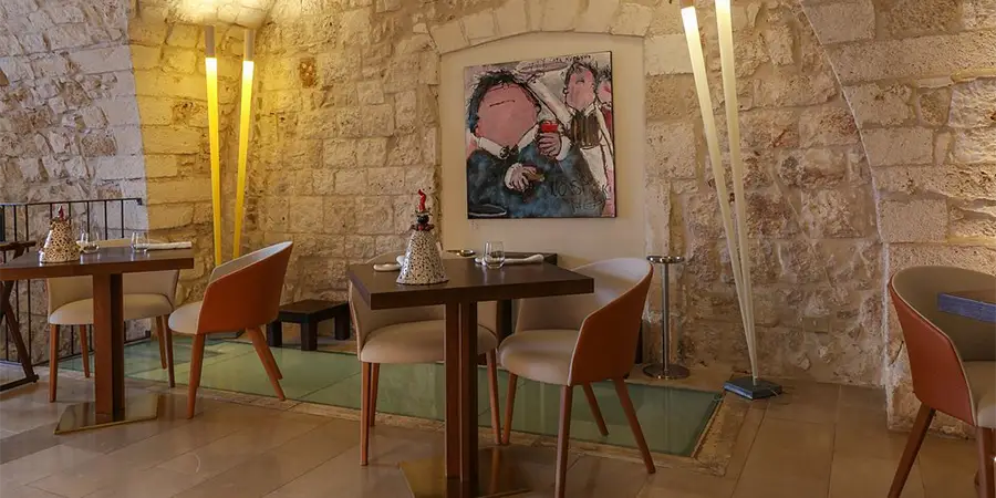Este restaurante elegante combina a cozinha tradicional da região com elementos criativos nos ingredientes e na apresentação. Você pode escolher entre o pátio externo, decorado com laranjeiras e oliveiras, ou o salão interno, sob um teto abobadado.