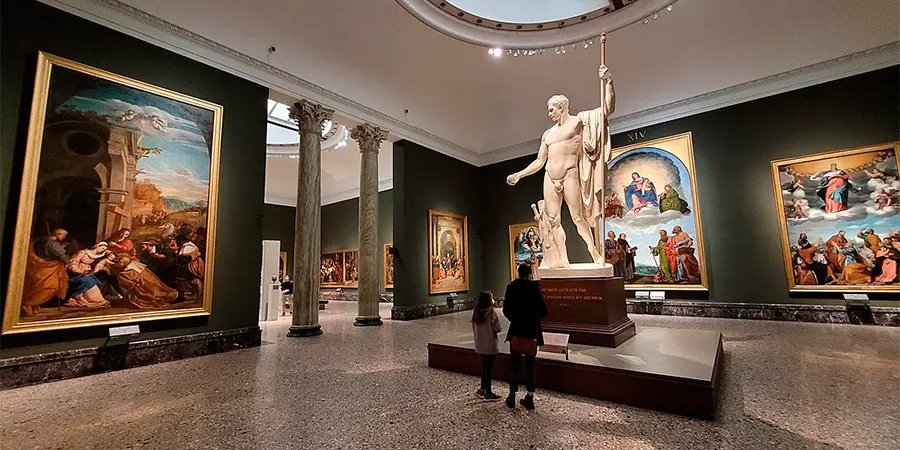 Um dos pontos altos é a Pinacoteca di Brera, que fica no Palazzo Brera, um belíssimo prédio cuja aparência atual é fruto do trabalho dos arquitetos Francesco Maria Ricchini e Giuseppe Piermarini. De modo que, nas 38 salas da Pinacoteca, as obras são distribuídas em ordem cronológica, iniciando nos afrescos lombardos e indo até Hayez e Appiani.